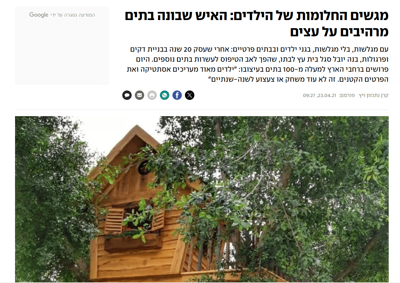 האיש שבונה בתים מרהיבים על עצים – כתבה ב -YNET